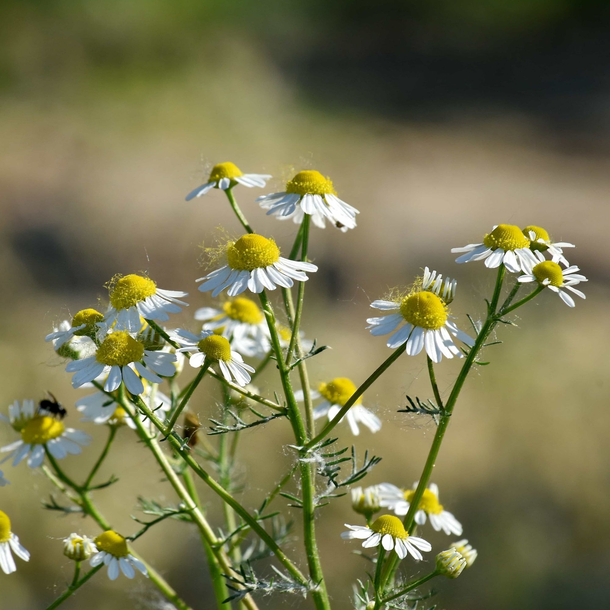 German Chamomile attracts beneficial insects including tiny parasitic wasps, hoverflies, and native bees.