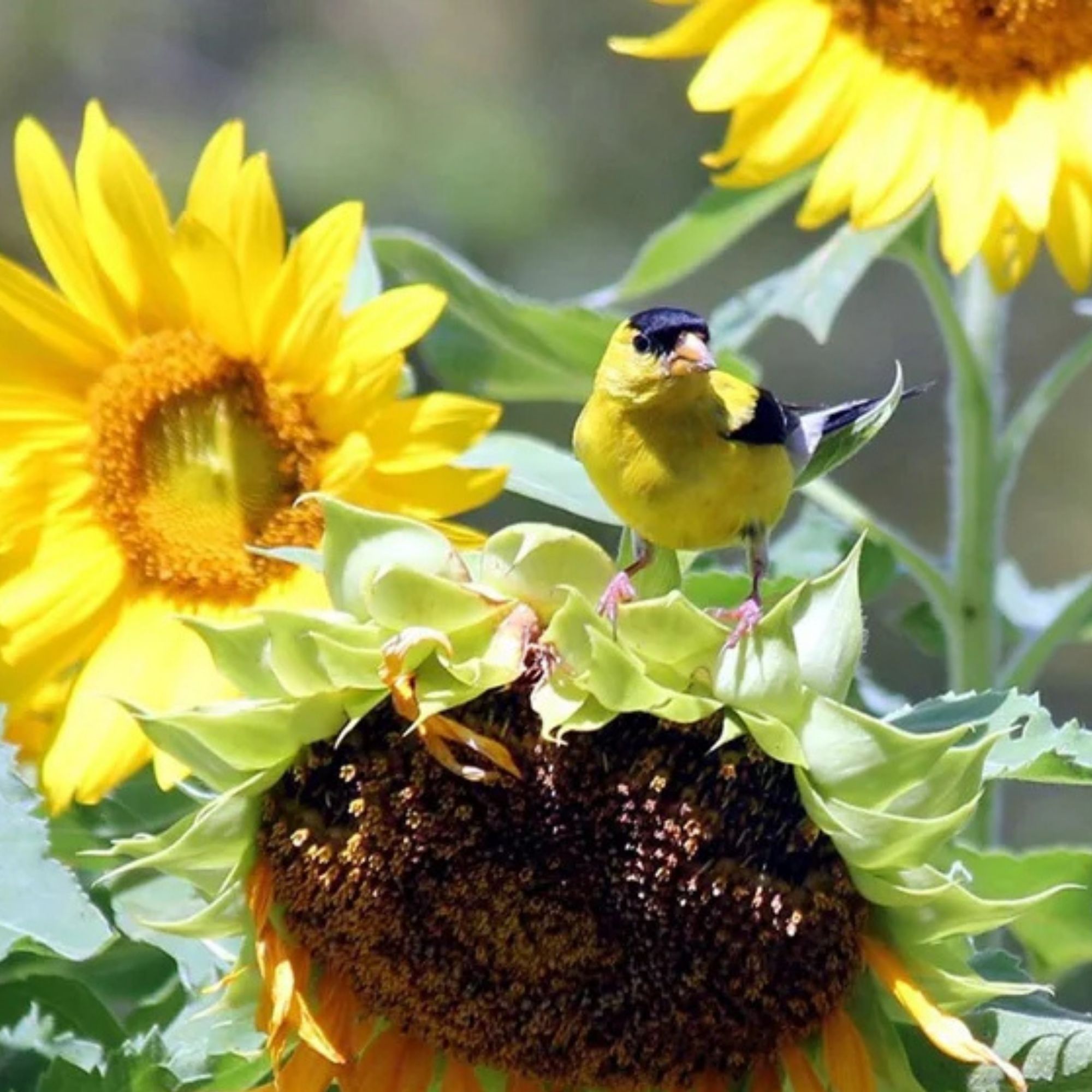 - Bloom Color: Bright yellow petals with grey-striped seeds